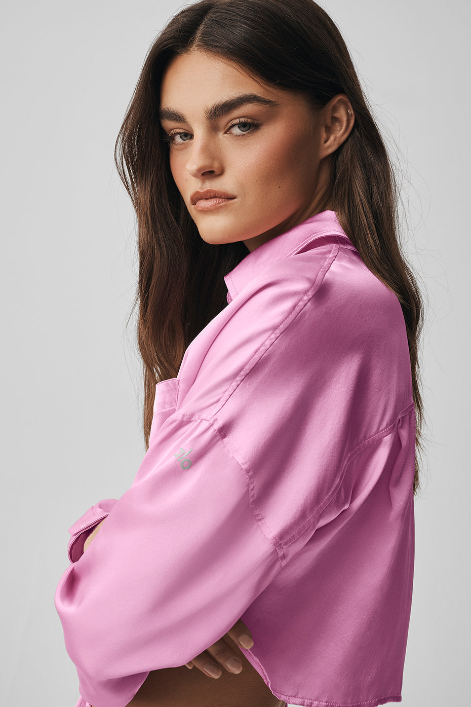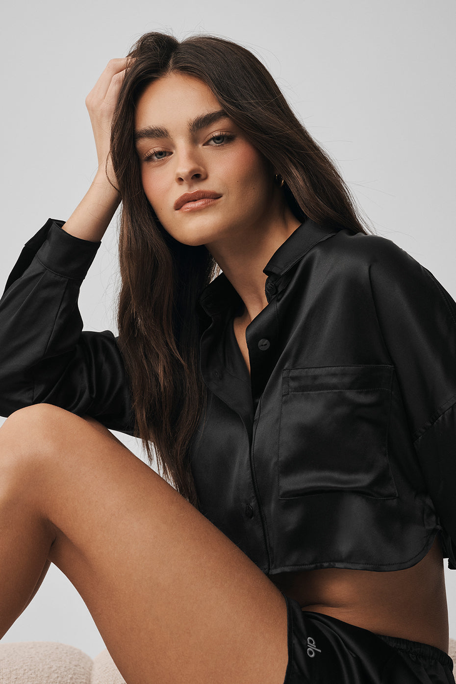 Silk Luminous Cropped Button Down Long Sleeve